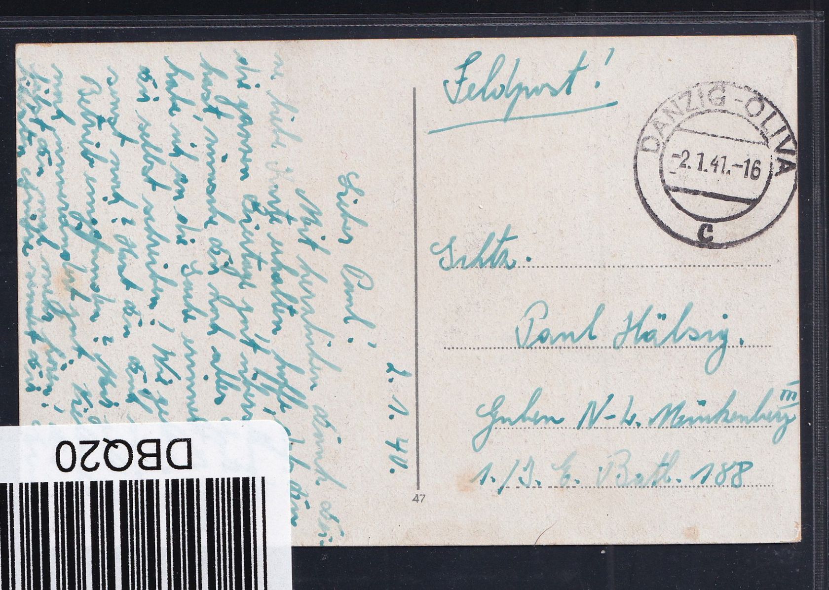 Ak Danzig Müller Gewerkshaus u. St. Katharienenkirche FP. Oliva 2.1.41 #DBQ20