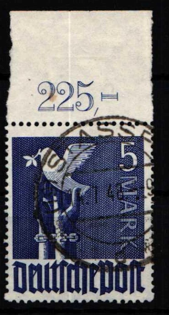 5 Mark Taube mit Oberrand nicht durchgezähnt mit Ortsstempel gestempelt.