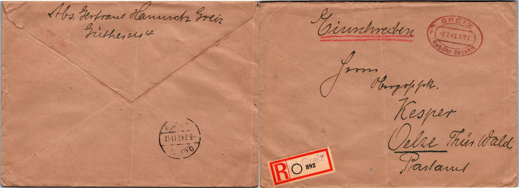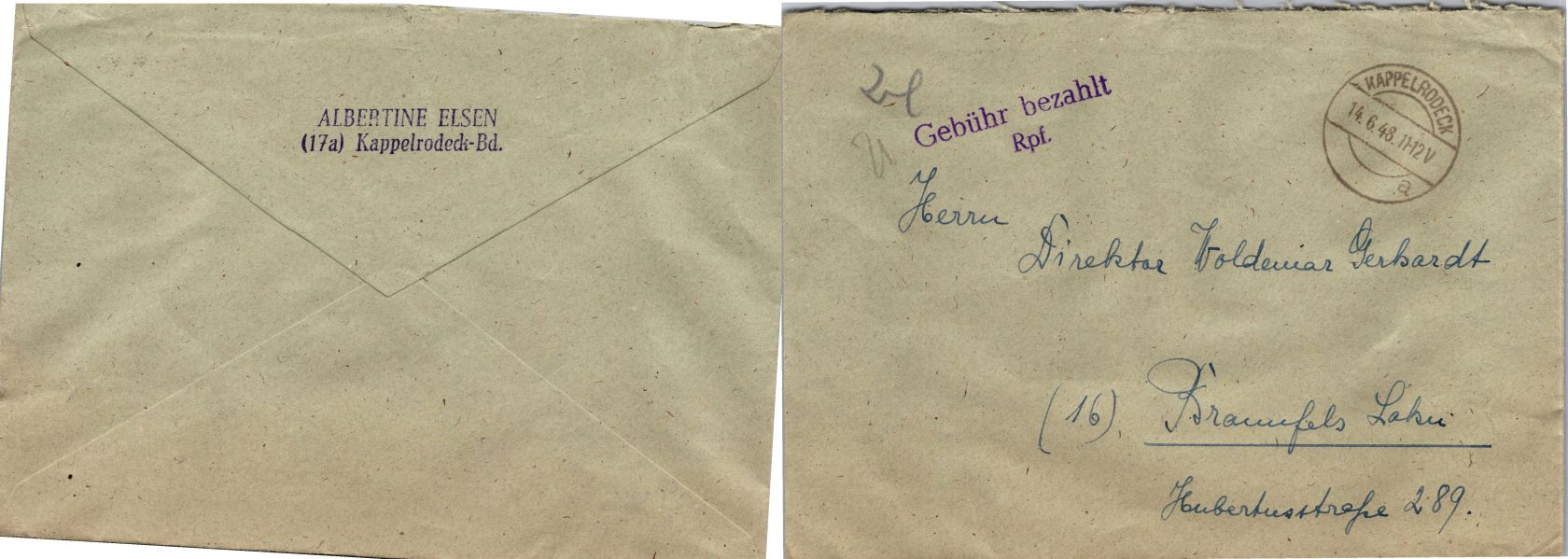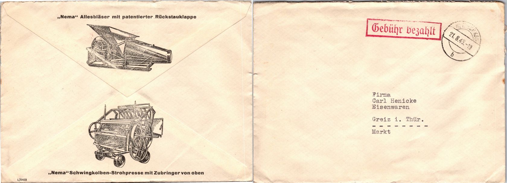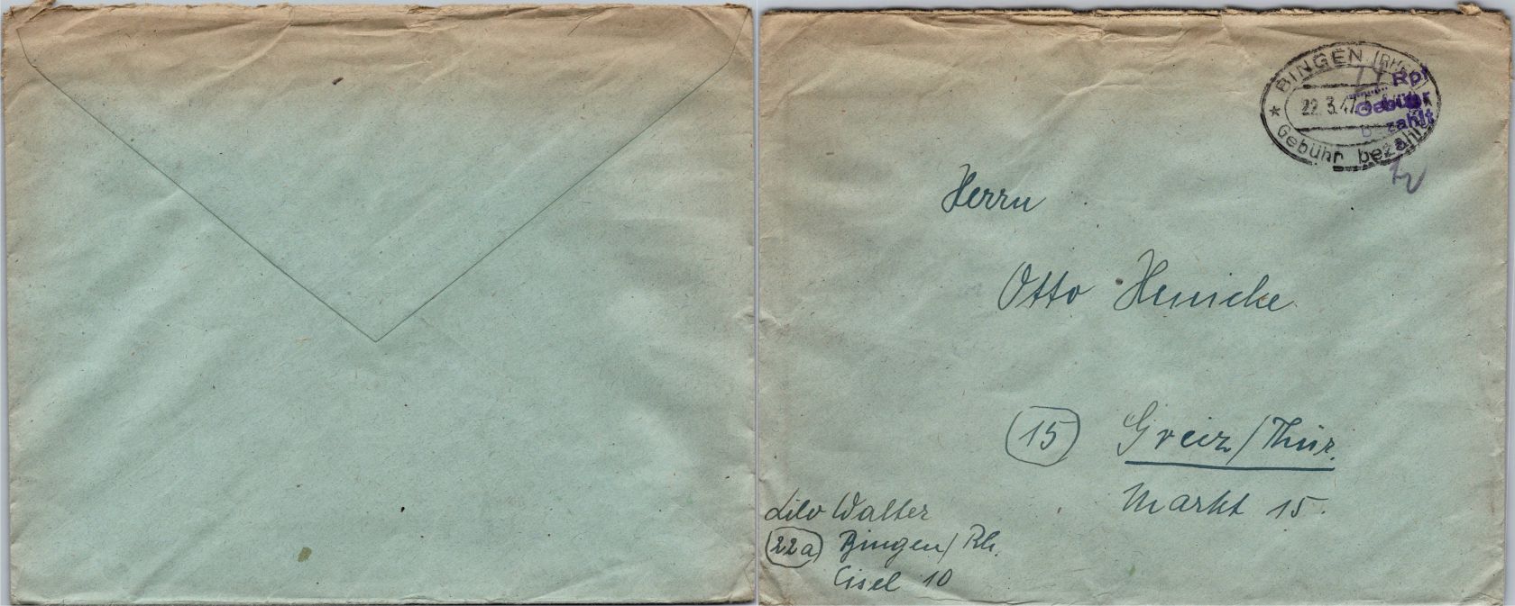 20 Belege Gebühr bezahlt aus 1945-1949