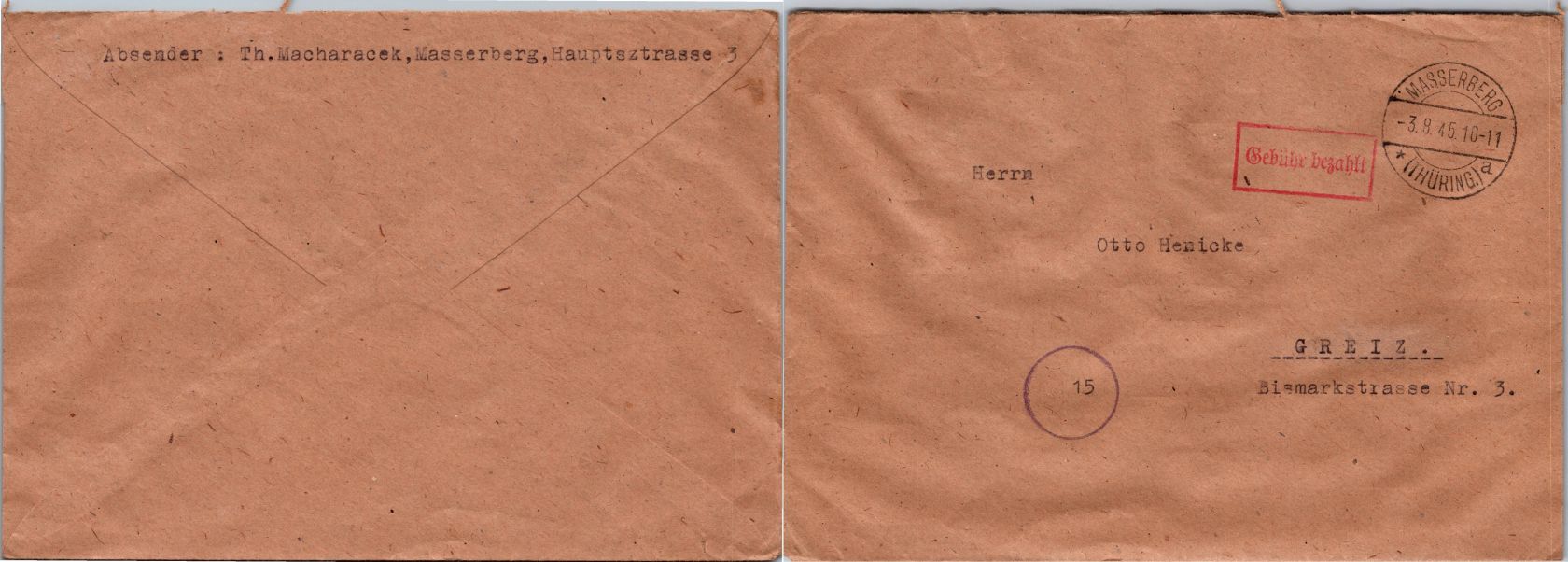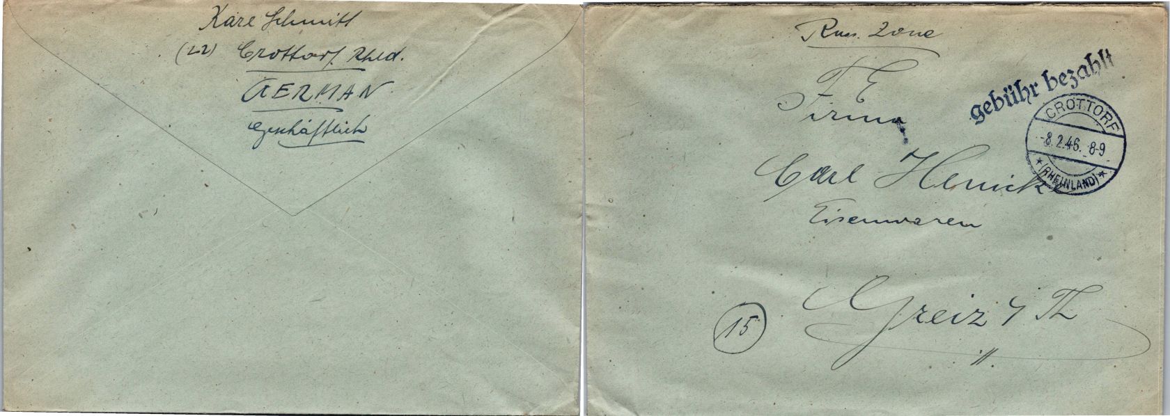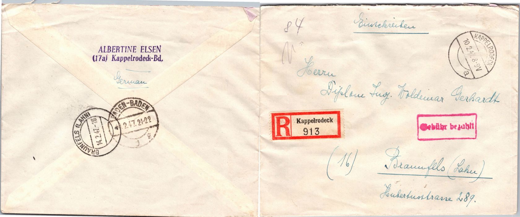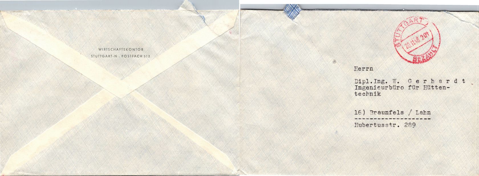 20 Belege Gebühr bezahlt aus 1945-1949