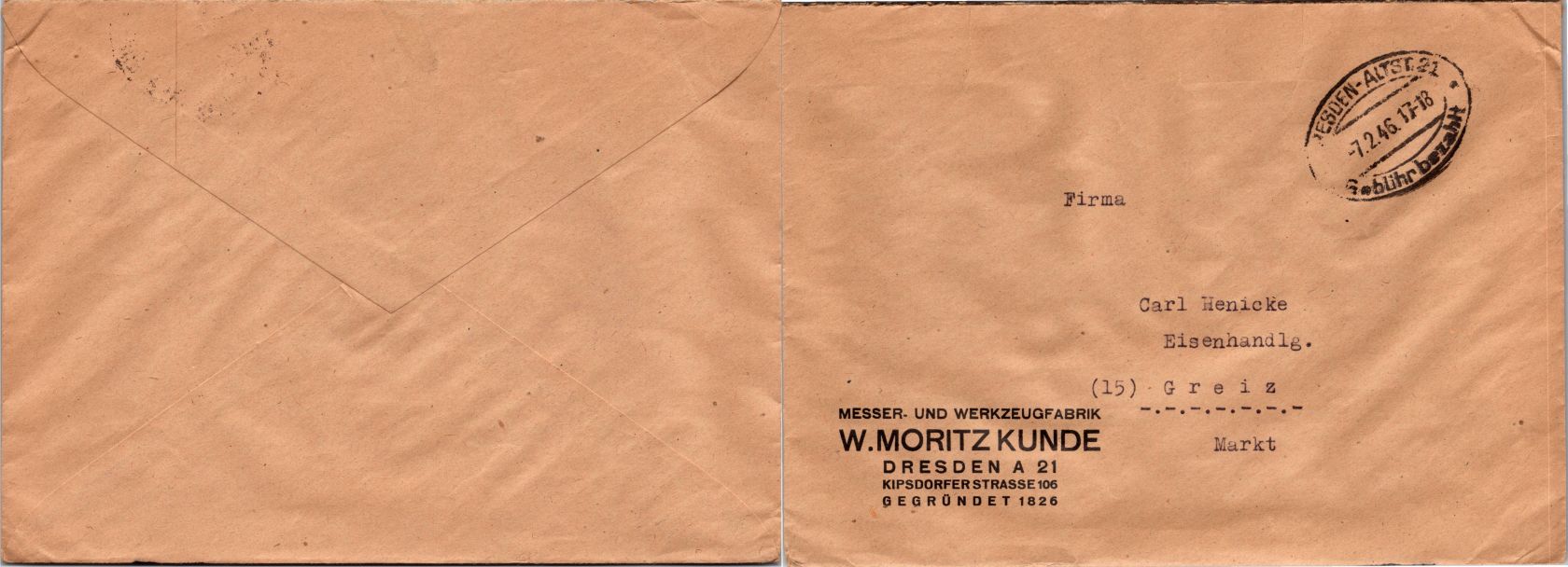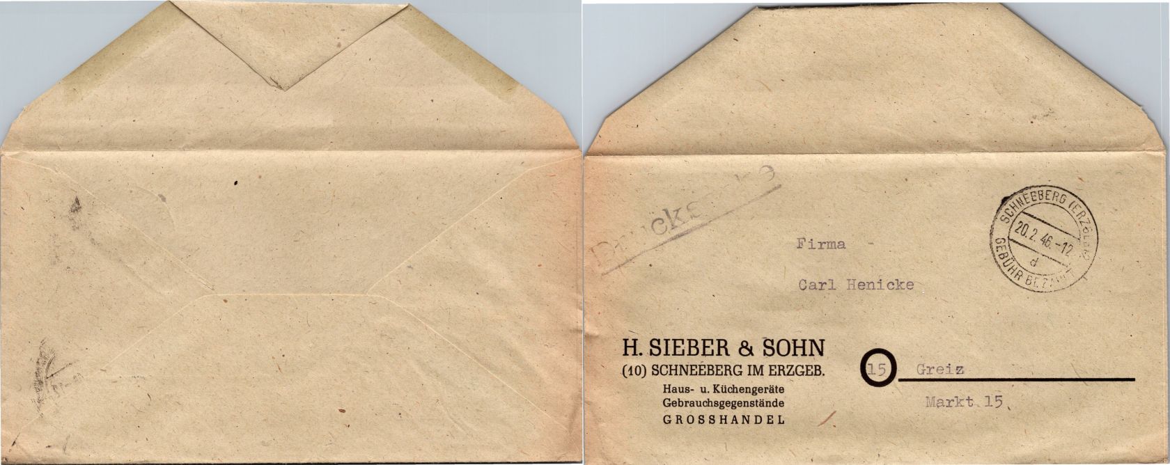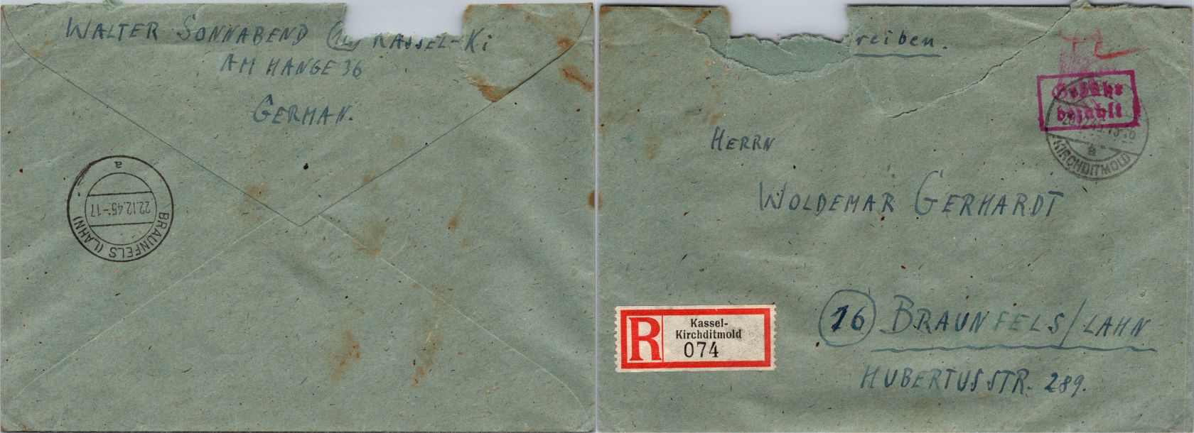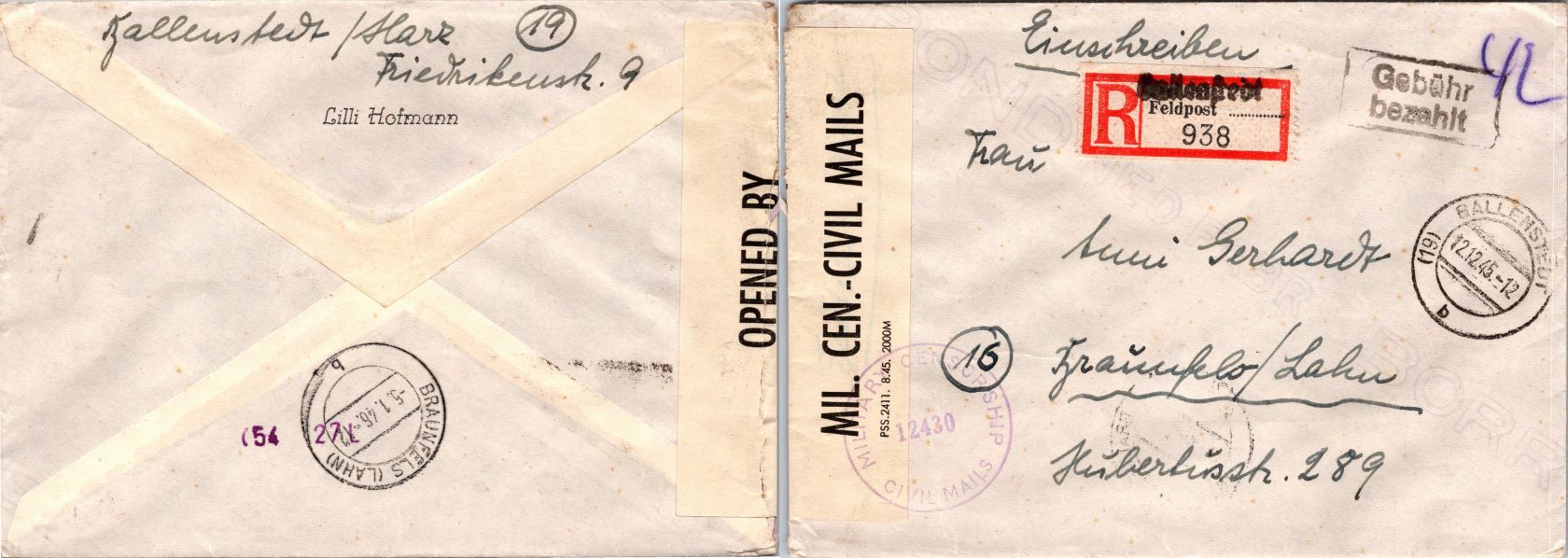 20 Belege Gebühr bezahlt aus 1945-1949