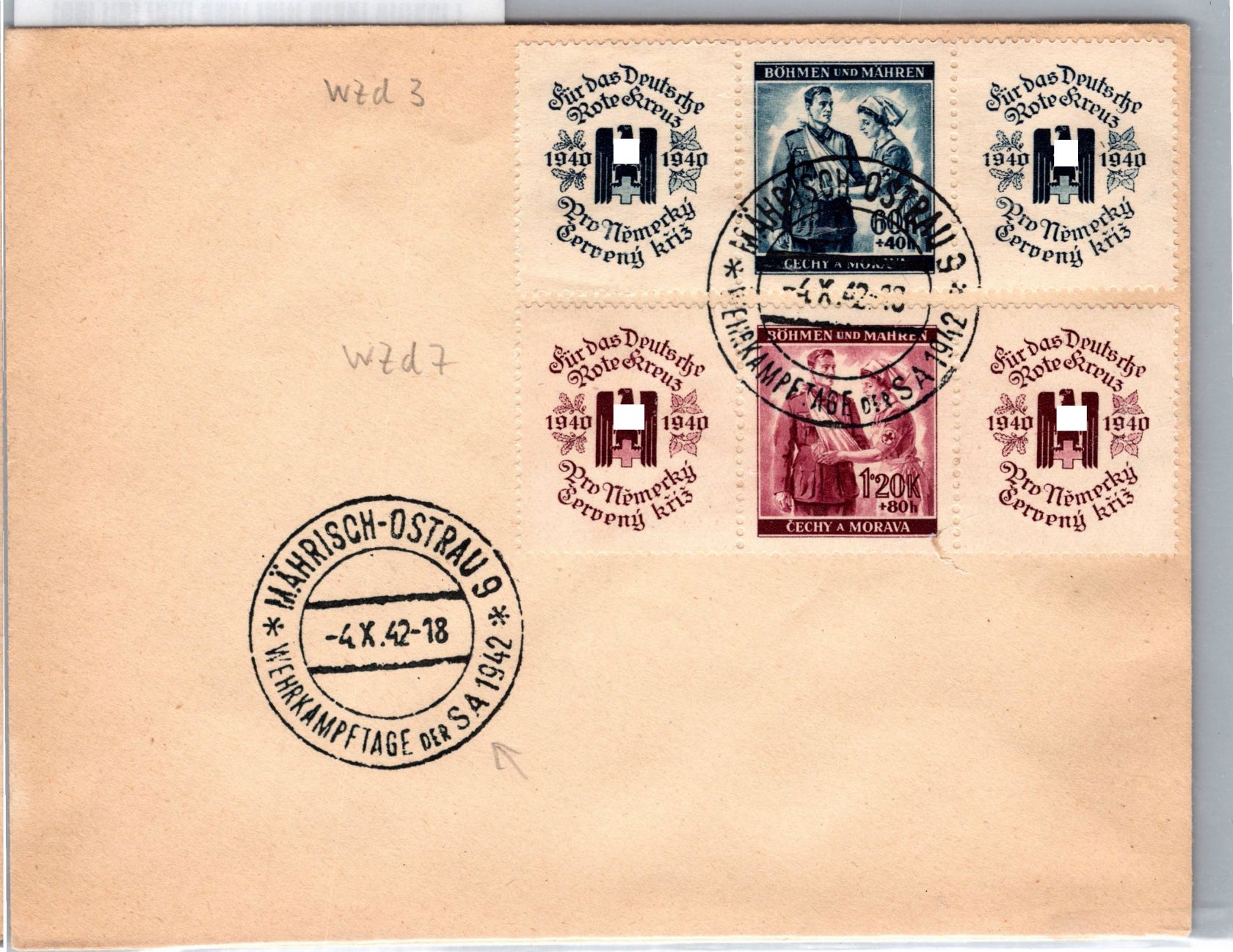 auf ungelaufenem Brief gestempelt Sst. Mährisch Ostrau Wehrkampftage der SA 4.10.42