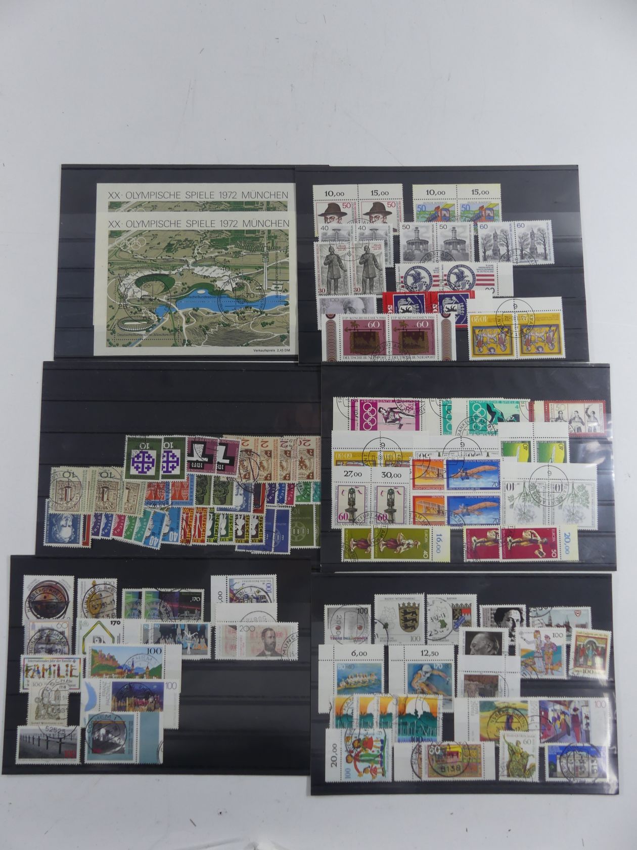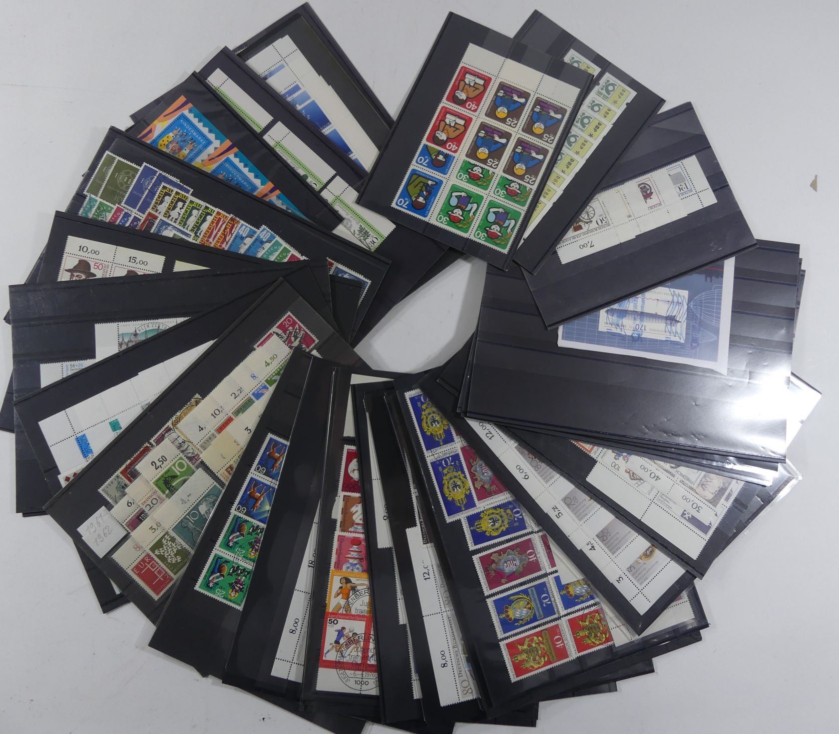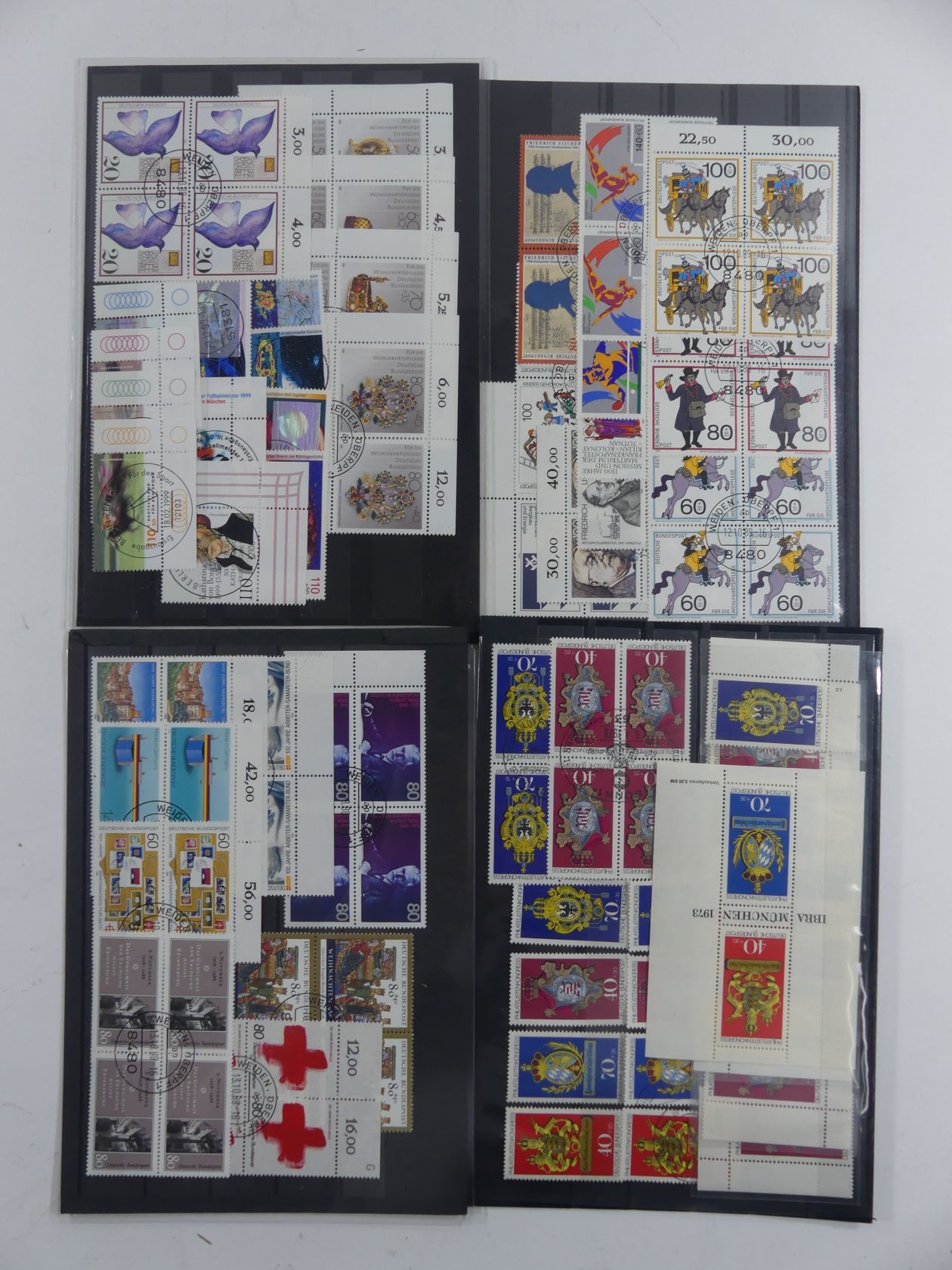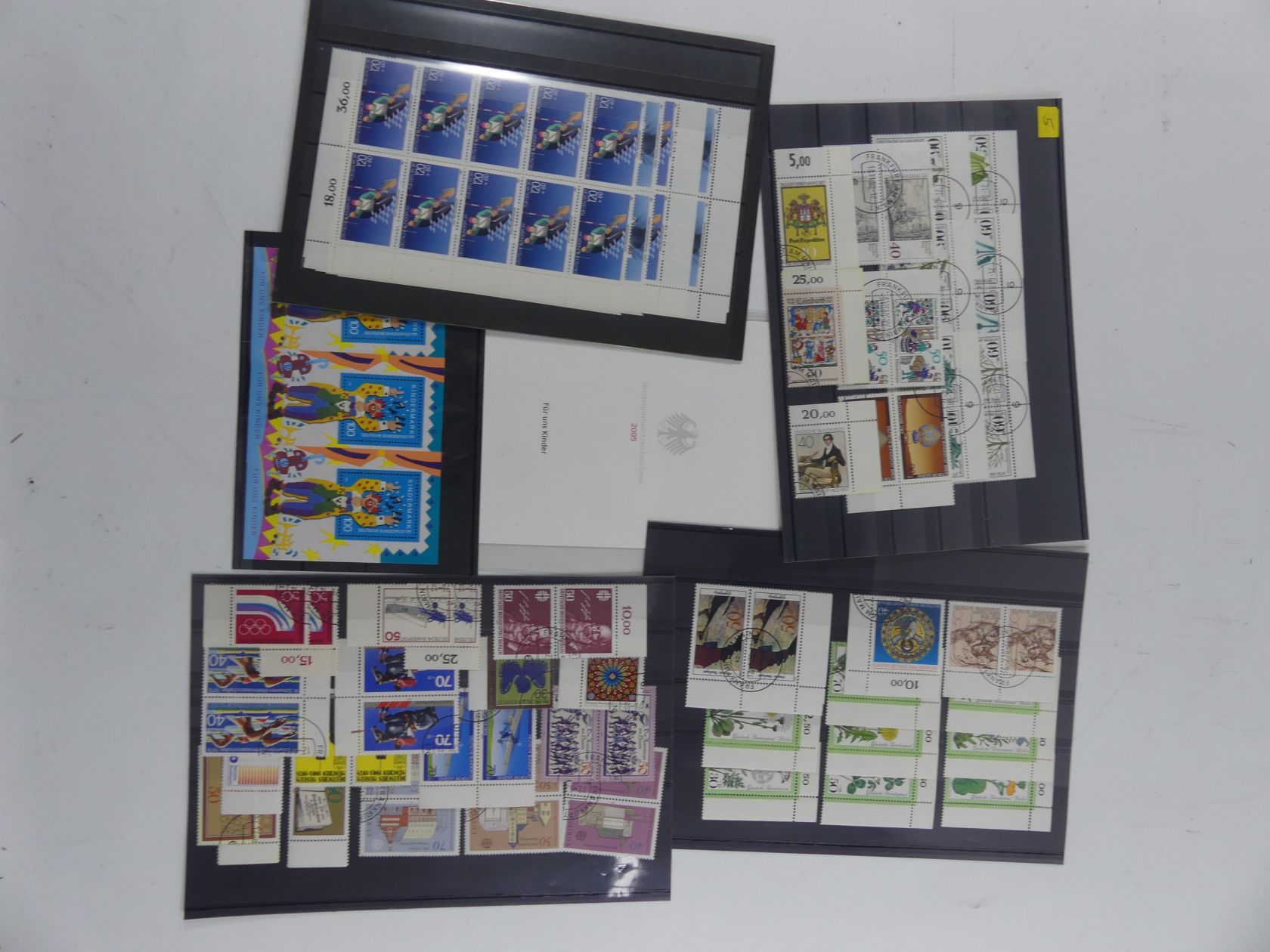 Karton mit Steckkartenposten BRD und Berlin Eckränder, Formnummern, Viererblöcke, Bogennummern und Zusammendrucken.