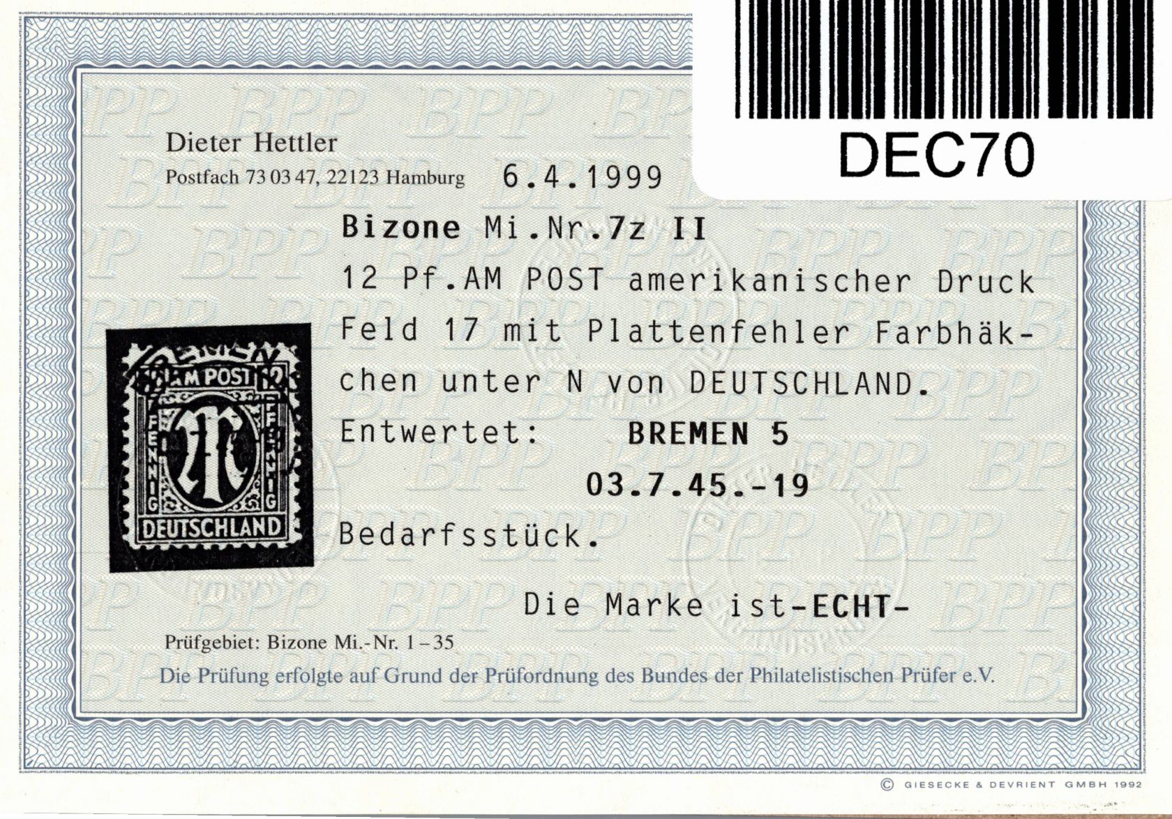 Plattenfehler 7 z II Feld 17