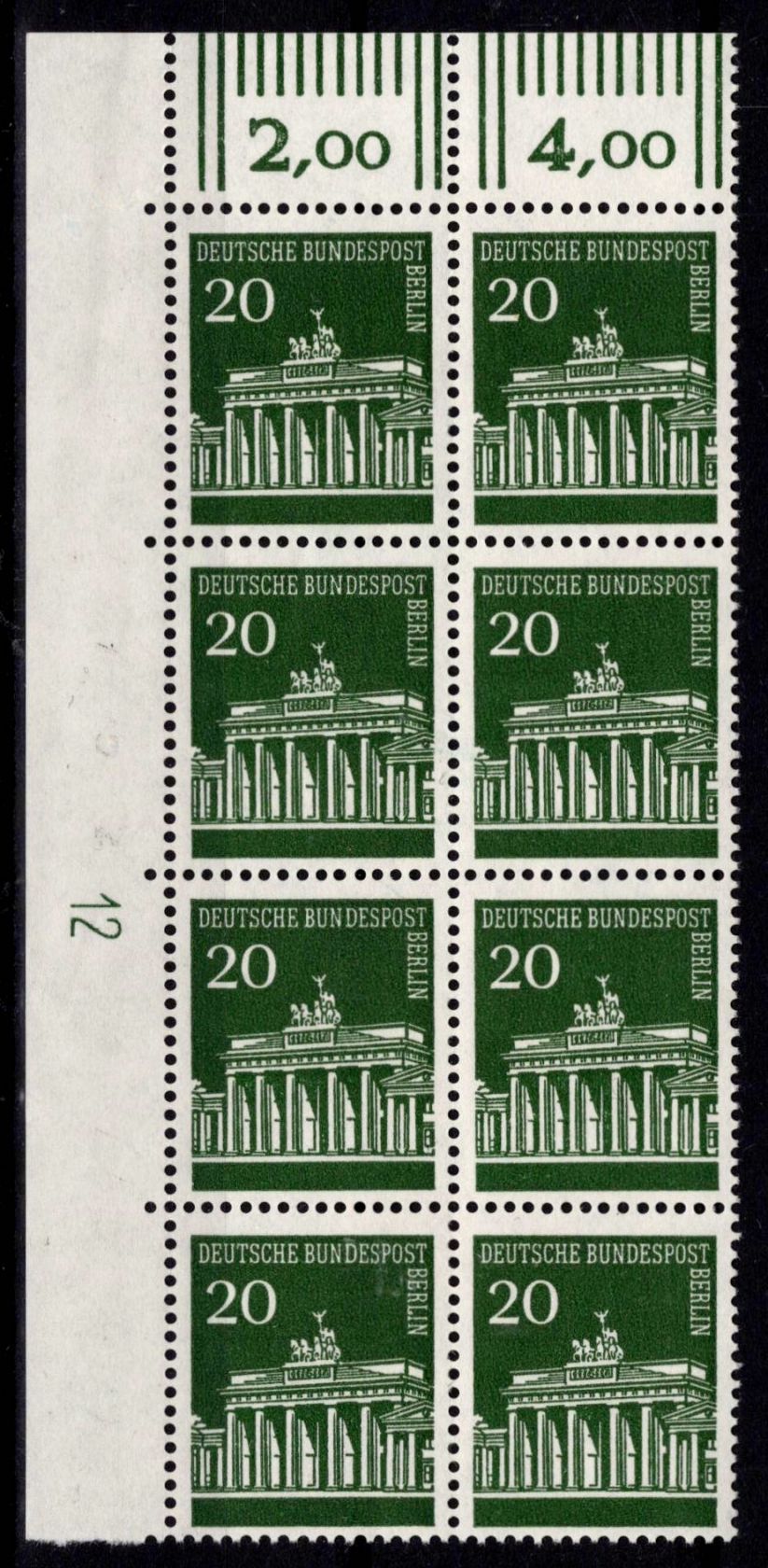 Der Eckrand-8er-Block oben links ist ungefaltet und nicht angetrennt!