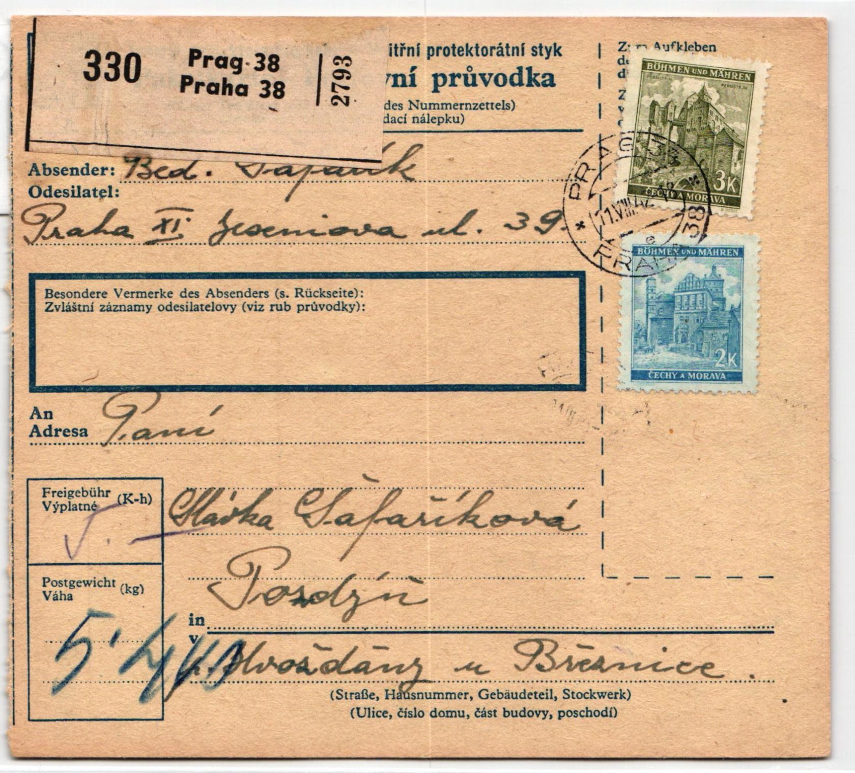 Böhmen und Mähren 72 u.a. auf Brief als Mischfrankatur Paketkarte #KN364