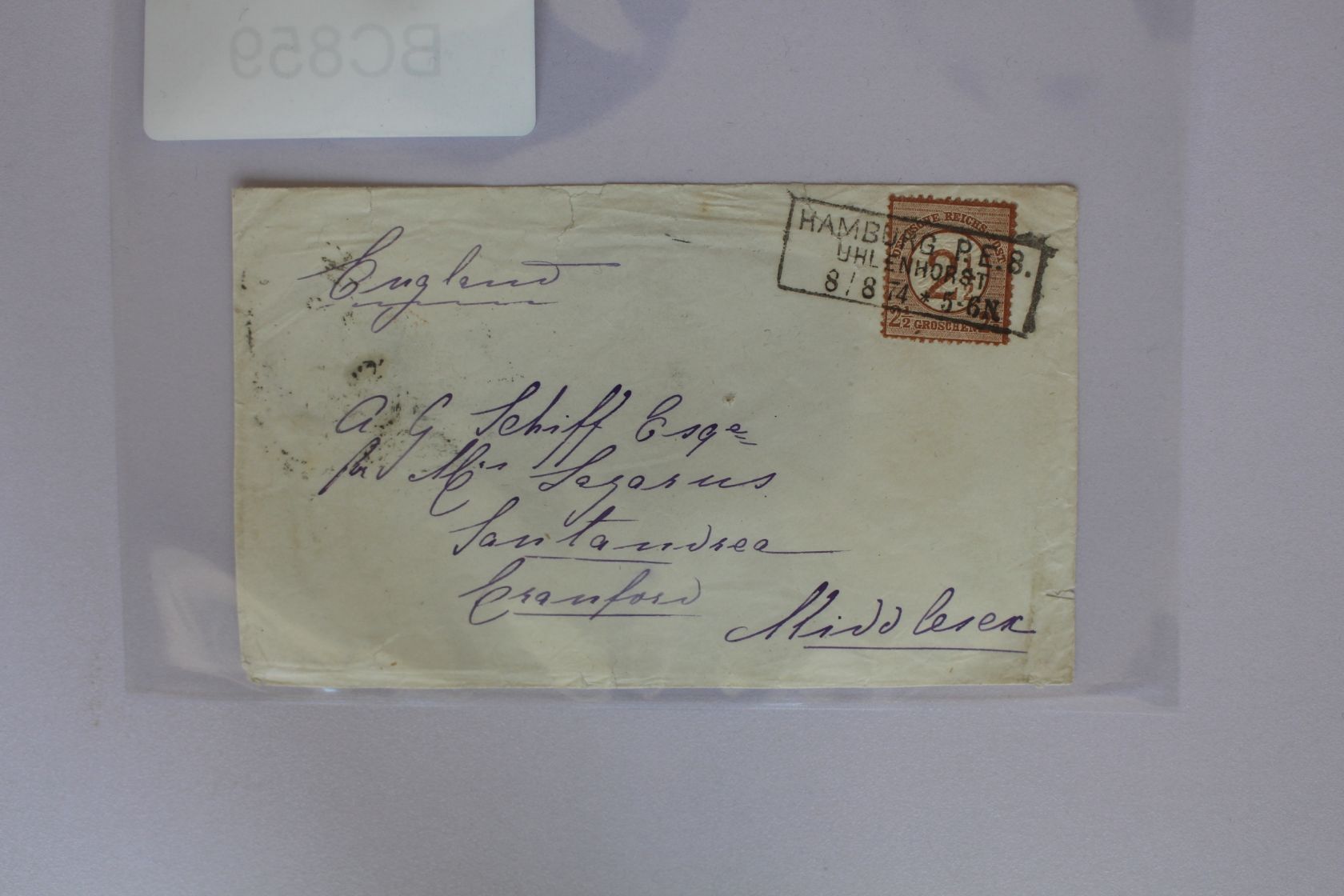 Mi. Nr.: 29 als portogerechte Einzelfrankatur auf Brief nach England Middlesex vom 8.8.74 Hamburg P.E.8 Uhlenhorst vom 8.8.74.Ankunft: 10.8.74. Brief etwas unsanft geöffnet. Marke gut gezähnt.