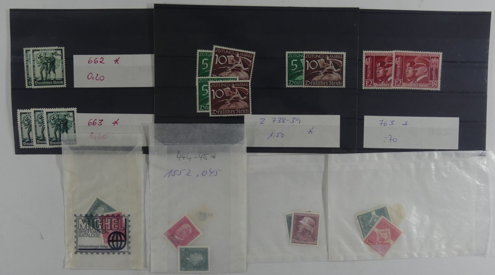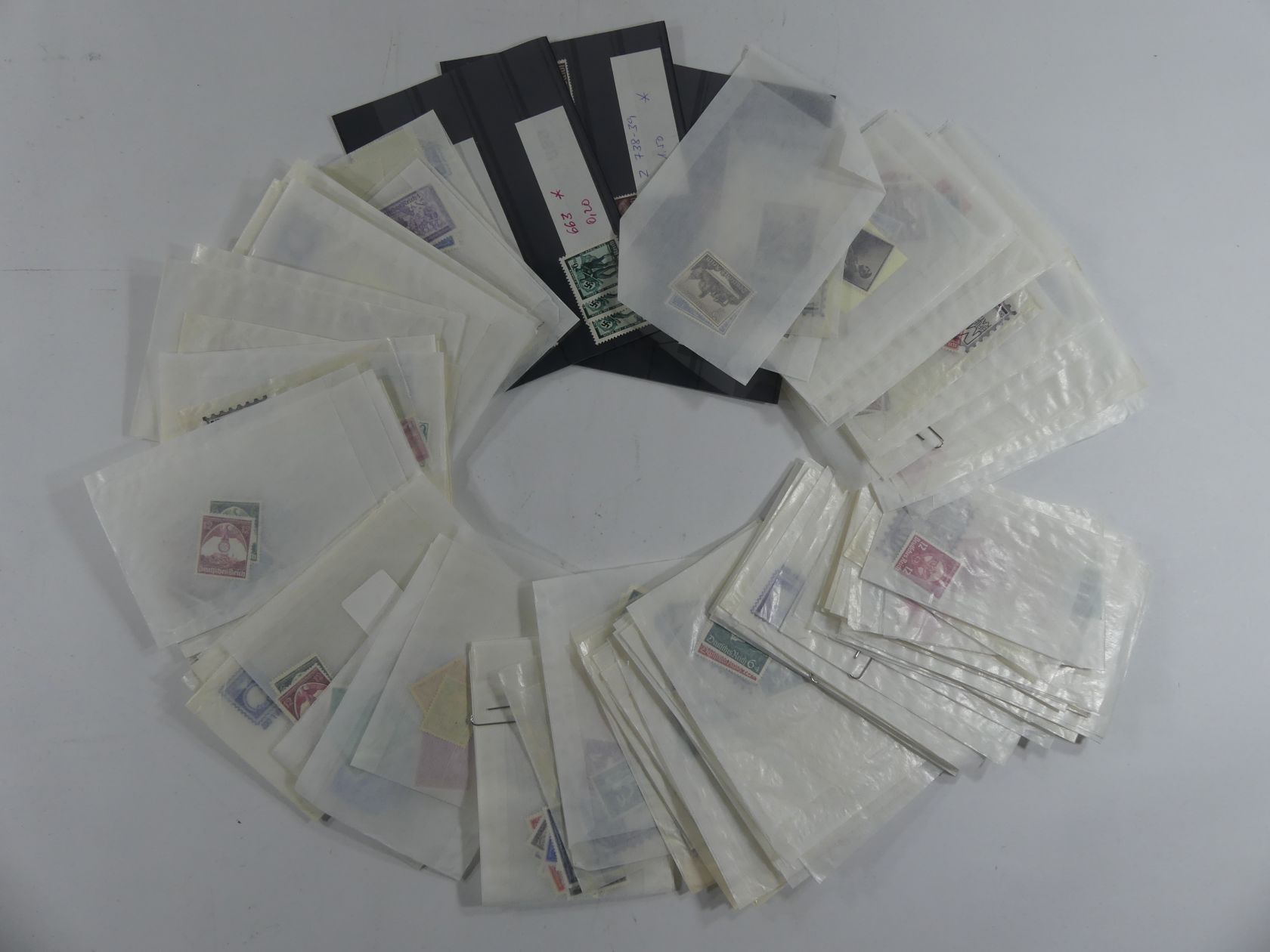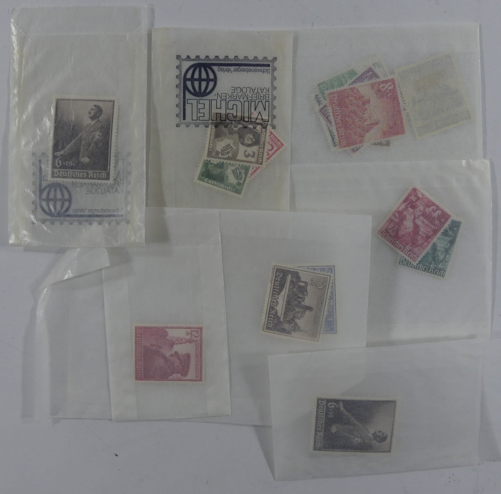 Karton mit Tütenposten Falzmarken aus dem 3. Reich