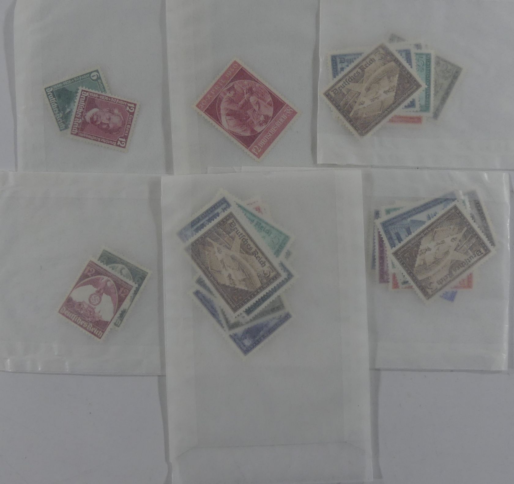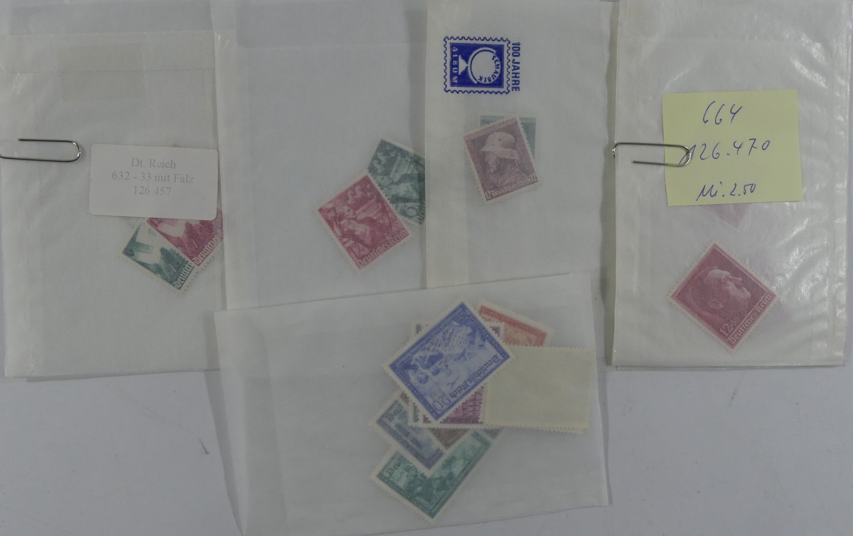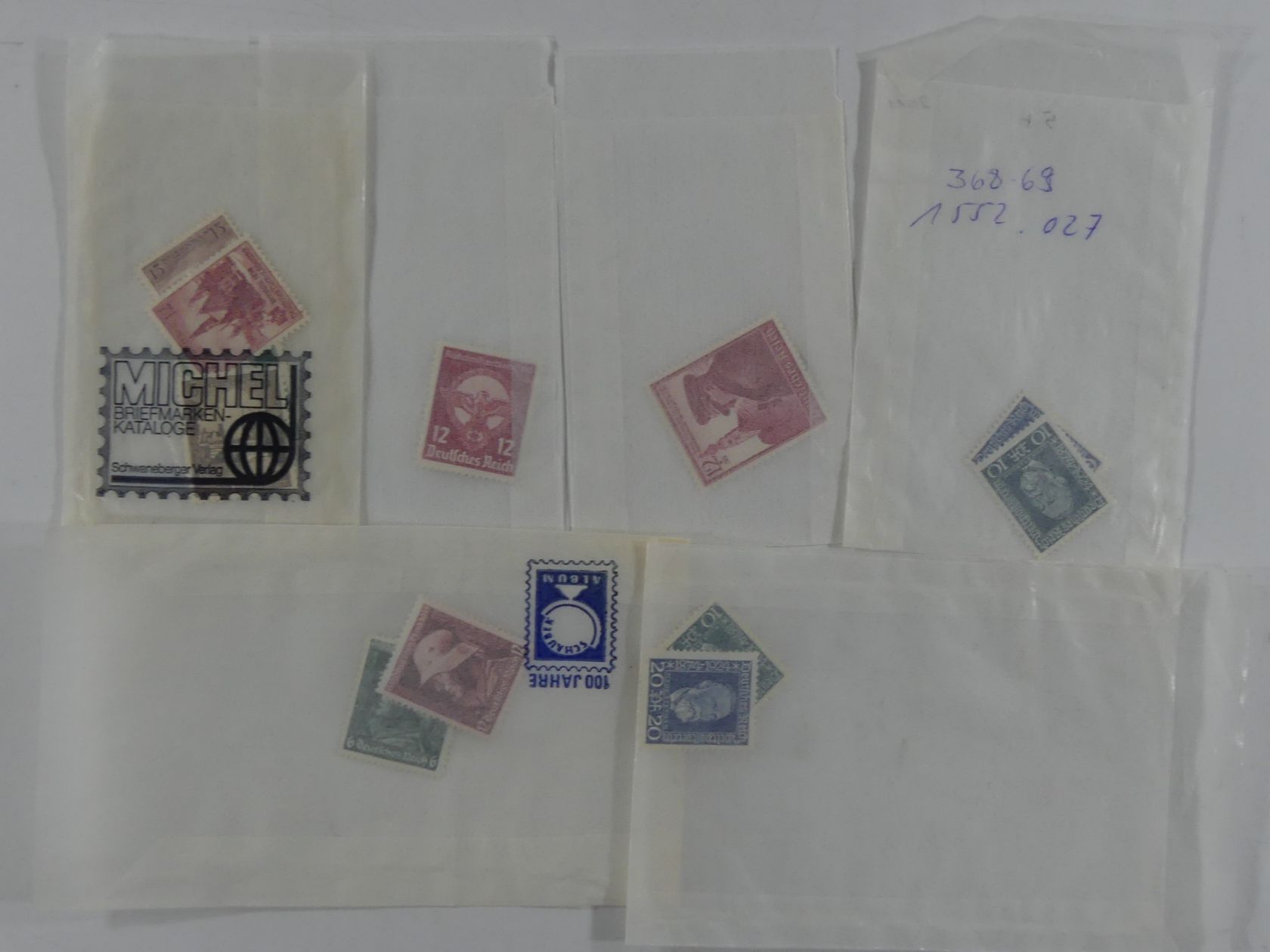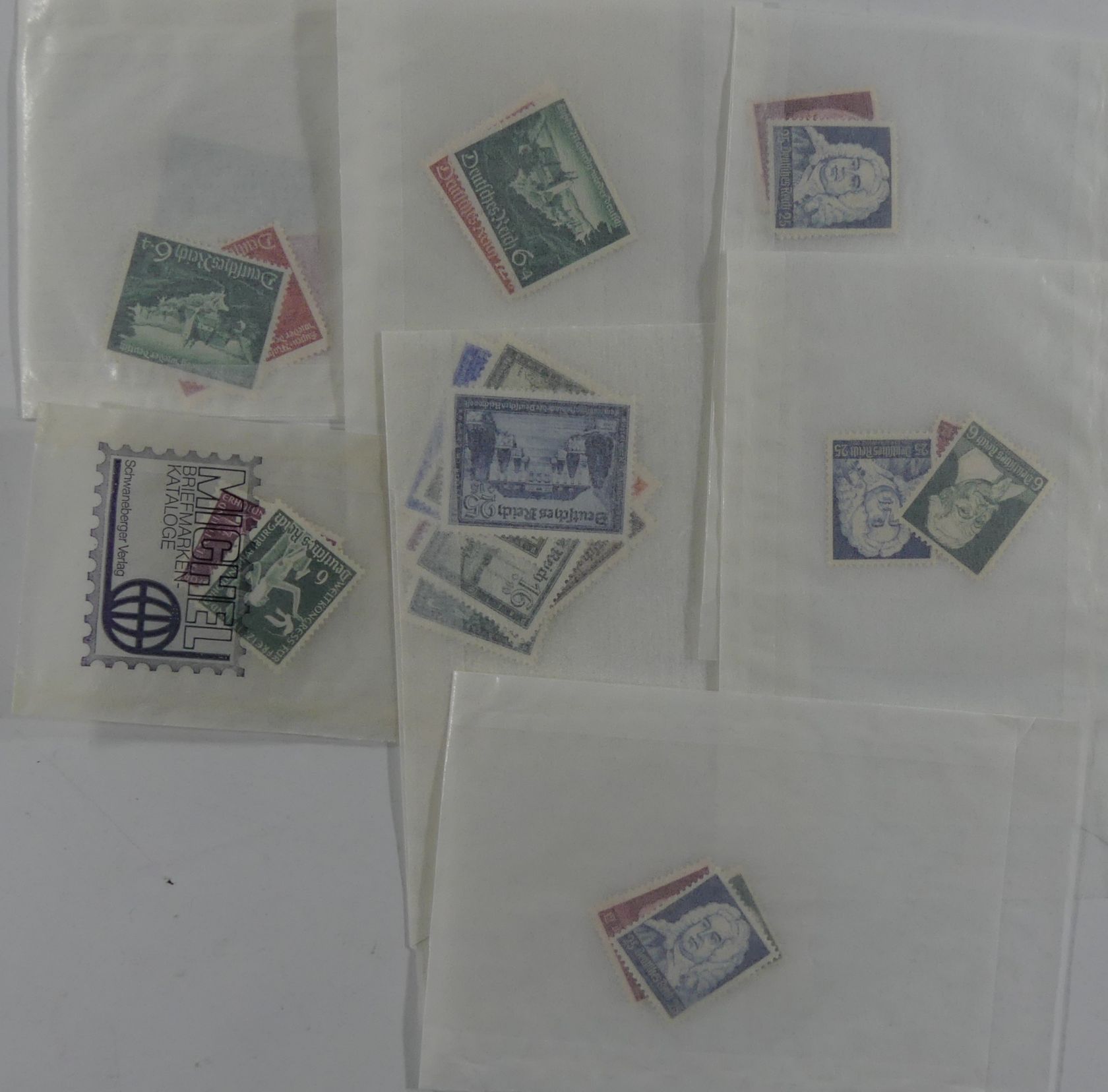 Karton mit Tütenposten Falzmarken aus dem 3. Reich