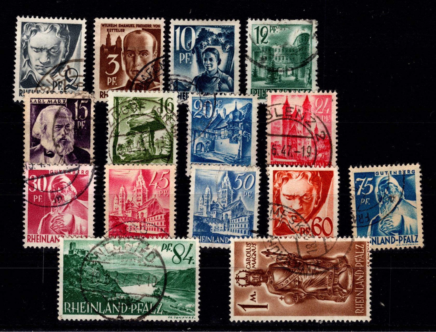 Französische Zone Rheinland Pfalz 1-15 gestempelt #DEF88