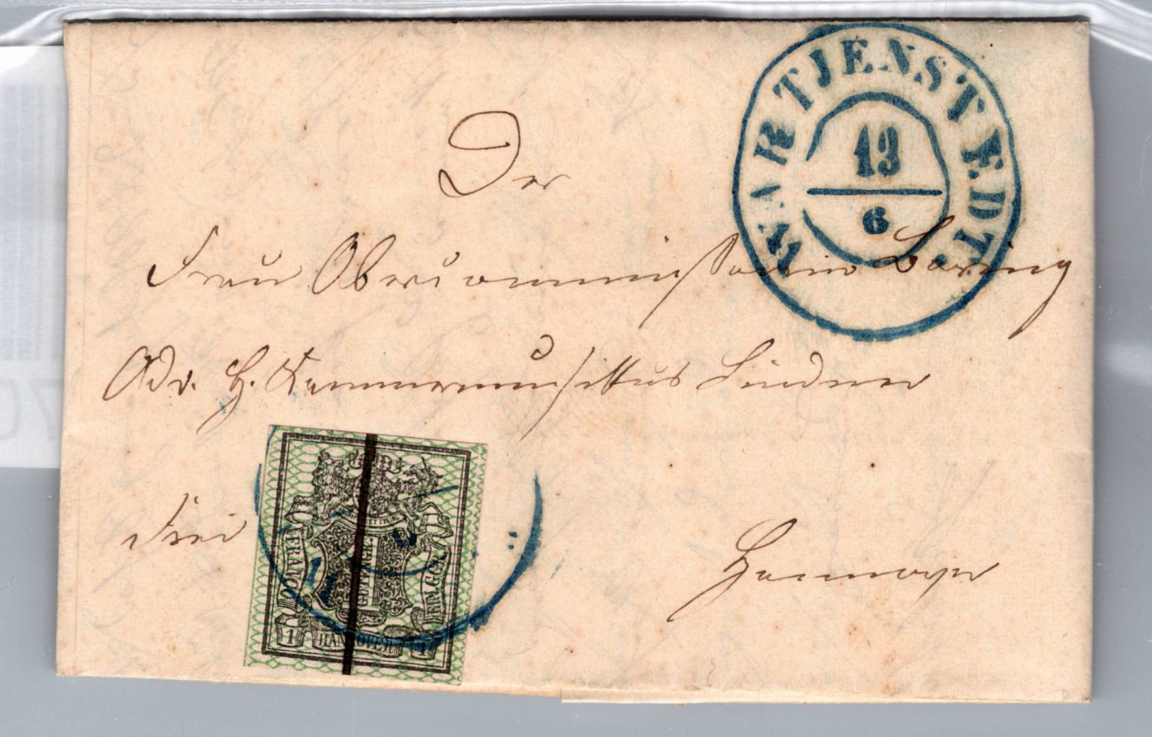 1 Ggr. "Wertschild im Wappen mit weitmaschigem Netz" auf Brief von Wartjenstedt nach Hannover gelaufen.