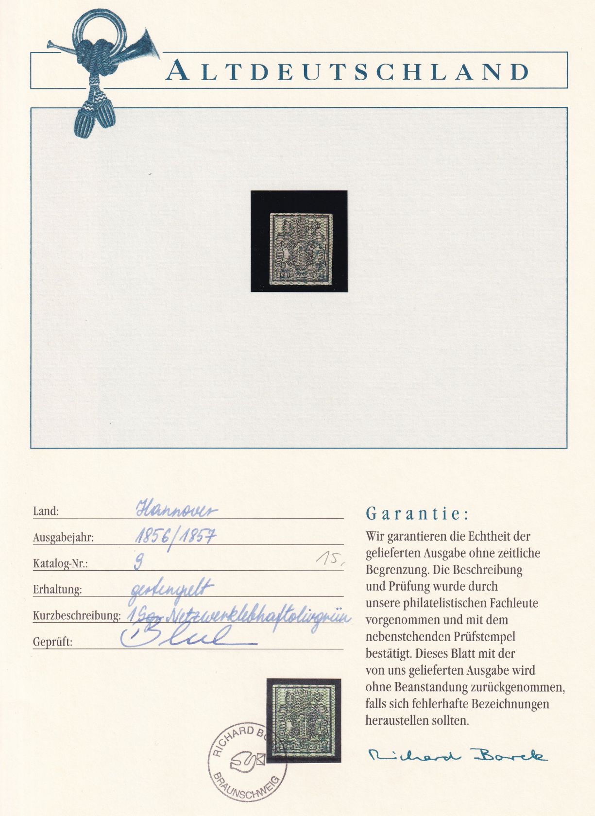 Hannover 9 gestempelt Borek Garantie #OV198