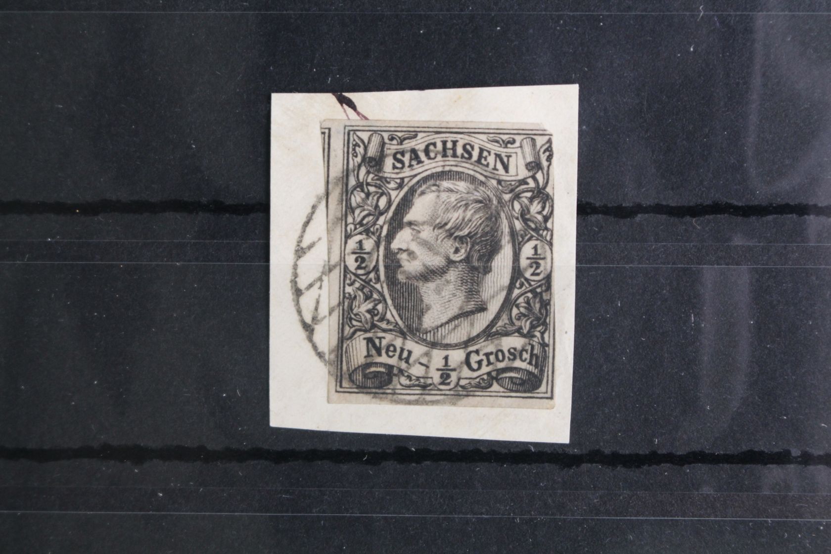 Mi. Nr.: 8 mit Nr.-Stempel 155 Meußelwitz (Stempel alleine 30,00 €), rechts angeschnitten, ansonsten breit- bzw überrandig mit Teil der Nachbarmarke.