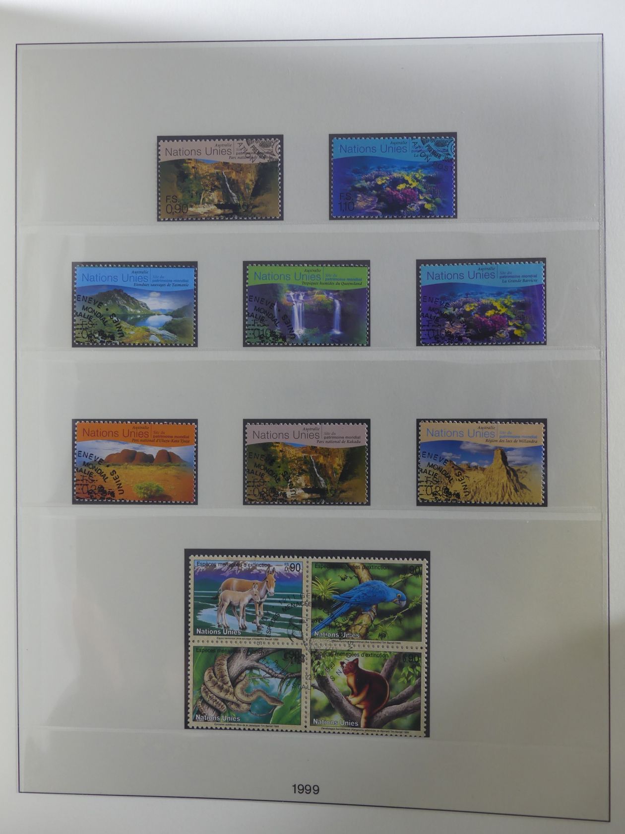 Uno genf 1969-1999 gestempelt besammelt im Lindner T falzlos Vordruck #MA468