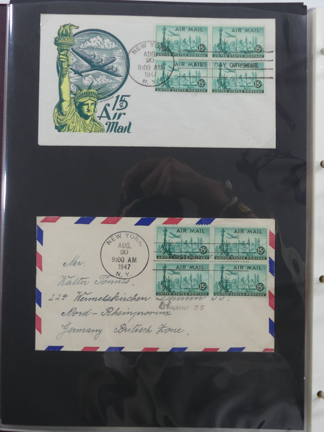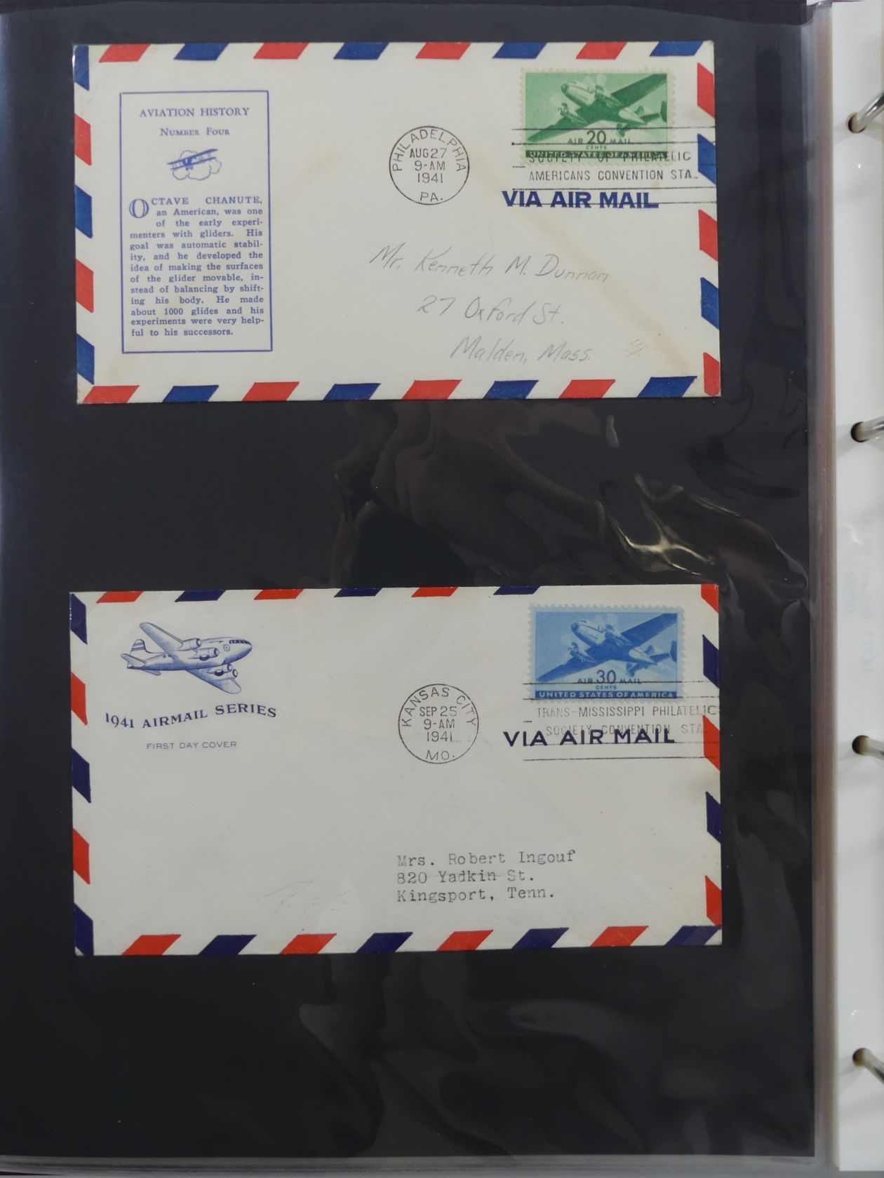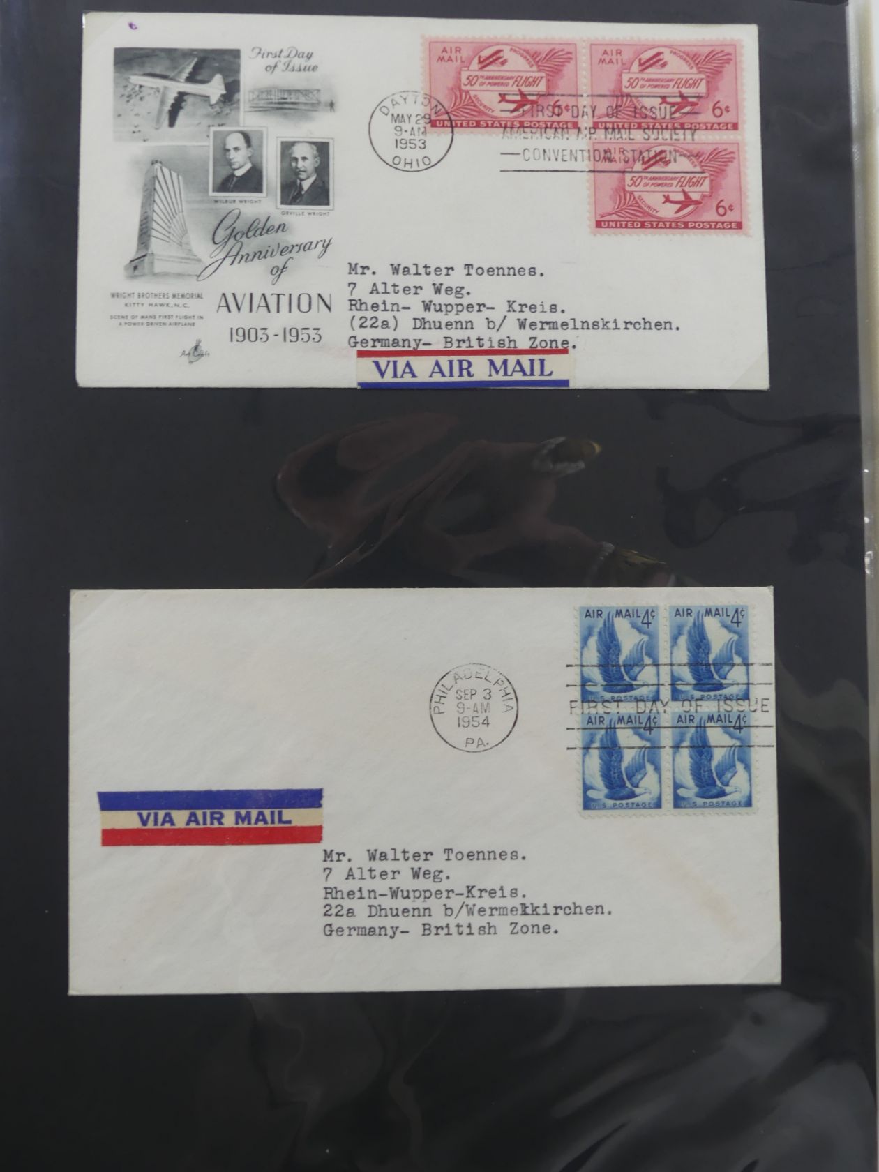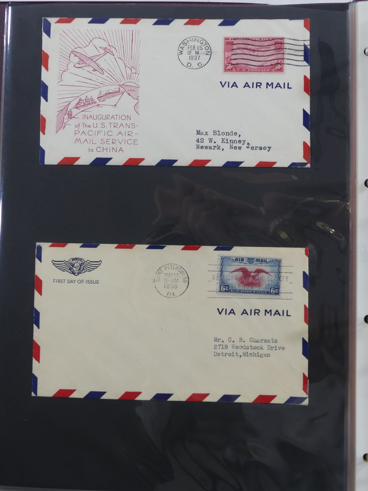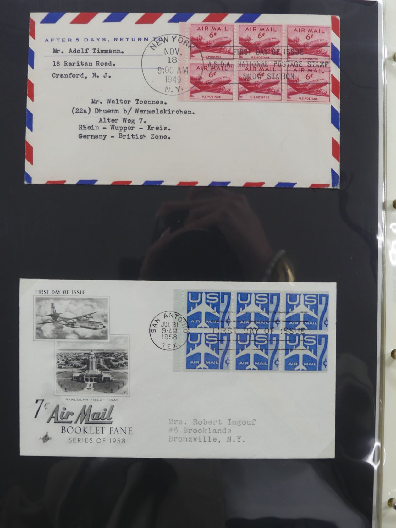 USA Luftpost u.a. mit Zeppelin besammelt auf selbstegestalteten Seiten #MA084