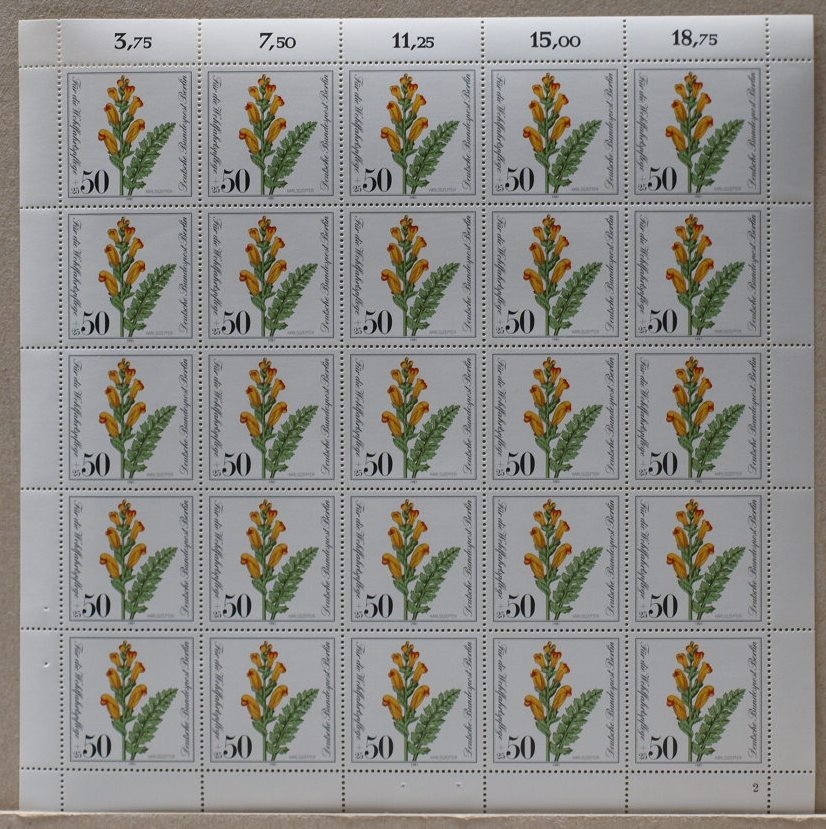Kompletter Bogen, ungefaltet und nicht angetrennt. Die Abbildung ist exemplarisch!
