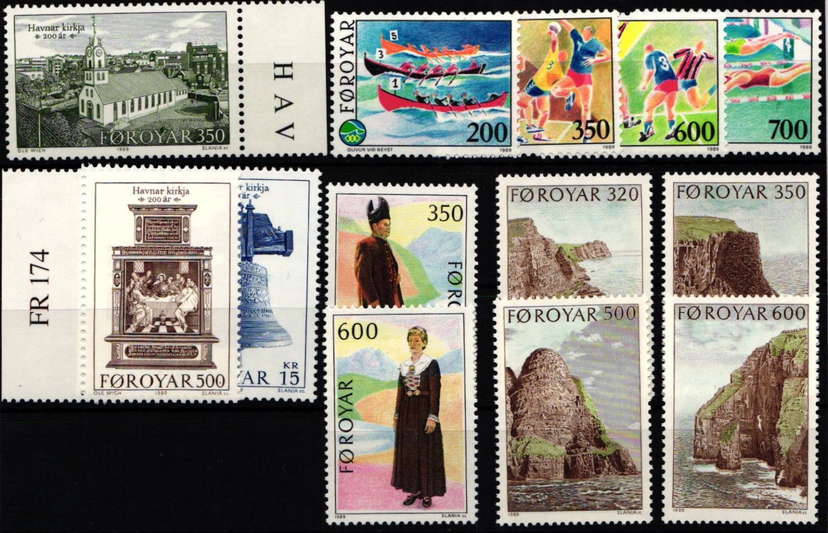 Dänemark Färöer Jahrgang 1989 mit 179-193 ohne 184-185 postfrisch #NO035