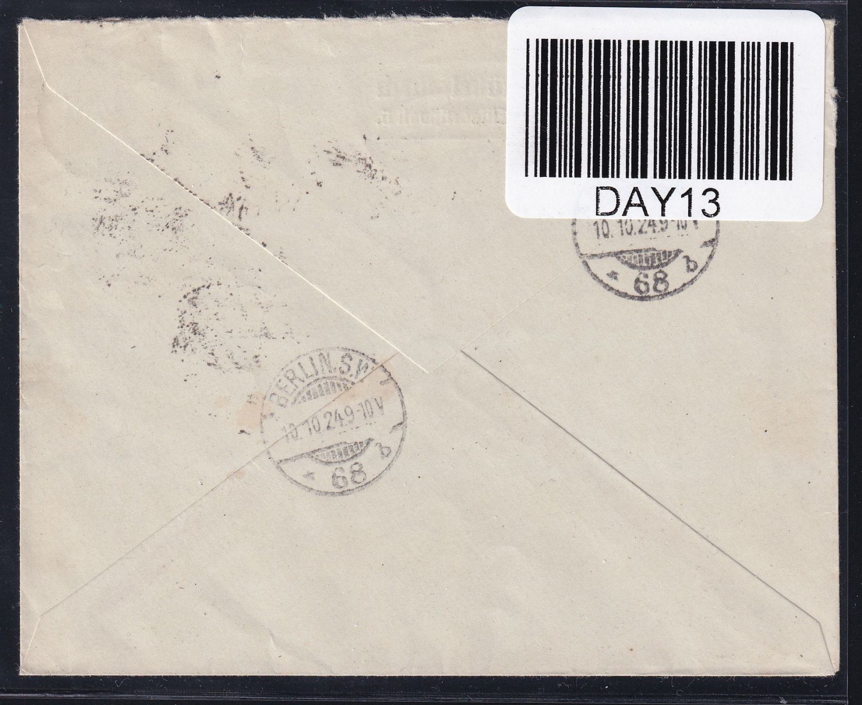 20 Pfennig Freimarke Staatswappen im Oval auf Fernbrief portogerecht am 9.10.1924 von Danzig nach Berlin gelaufen.