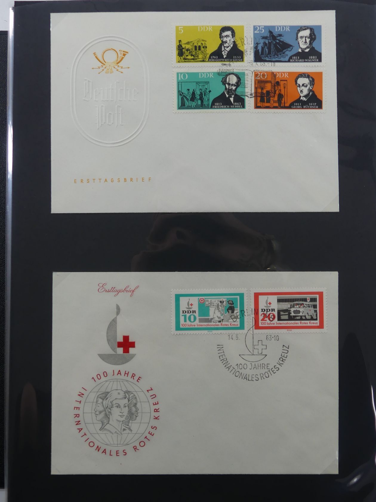 DDR Sammlung FDCs mit Besseren auf selbstgestalteten Seiten #MA100