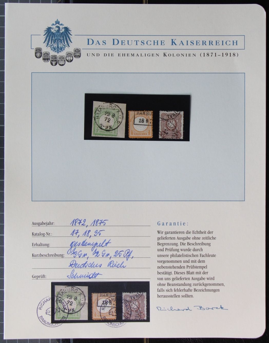 Deutsches Reich 17, 18 und 35 gestempelt Borek Garantie #KS341