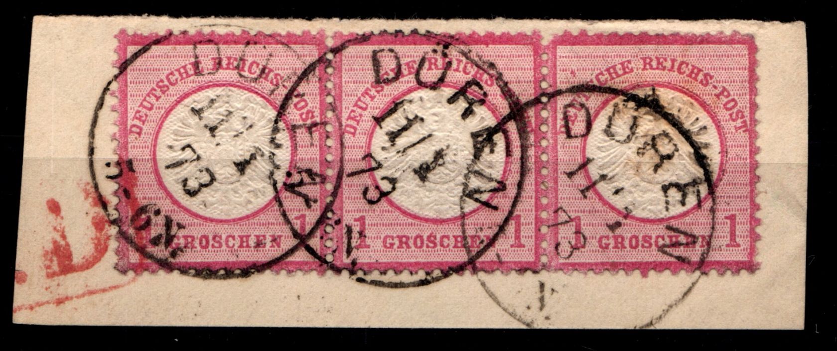 1 Gr. großes Schild im waagerechten 3er Streifen, 3 klare K1 Düren, Prachteinheit, geprüft Sommer BPP