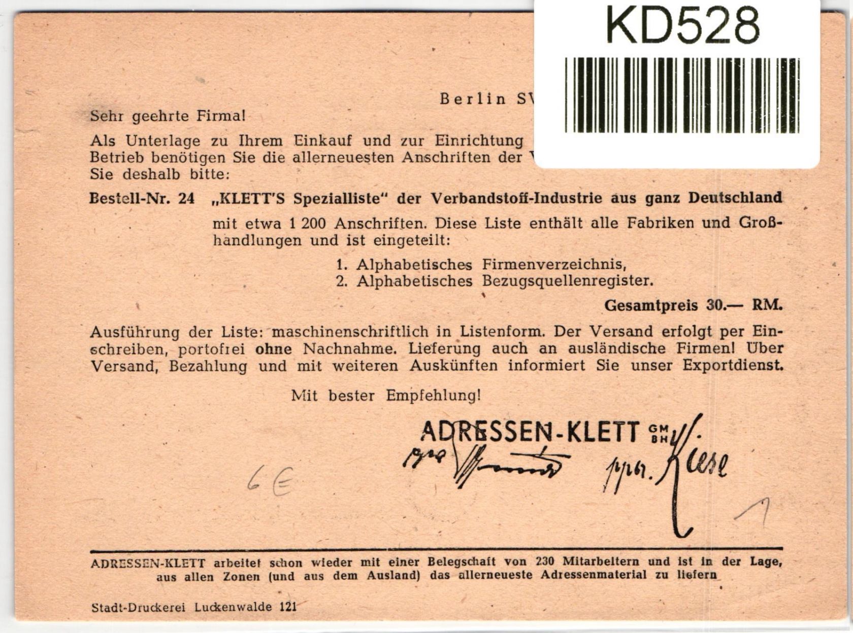 Freistempler Arbeitswelt von Klett GmbH - Adressen Klett - Berlin.