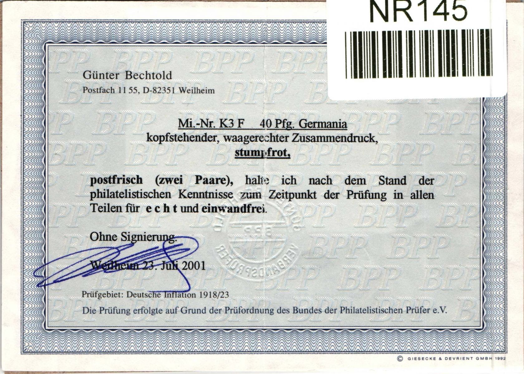 Der Befund ist auf 4er Block ausgestellt, es handelt sich aber nur um ein Paar.