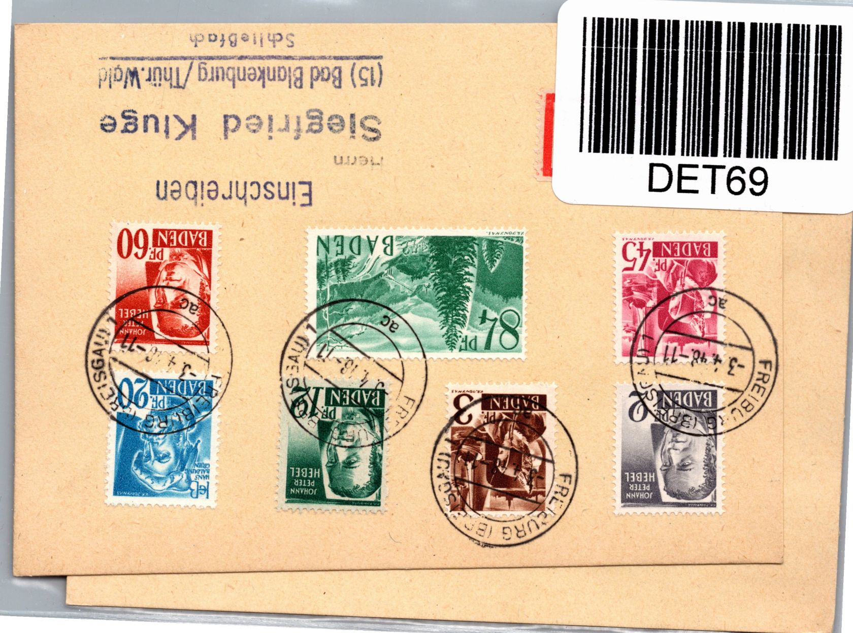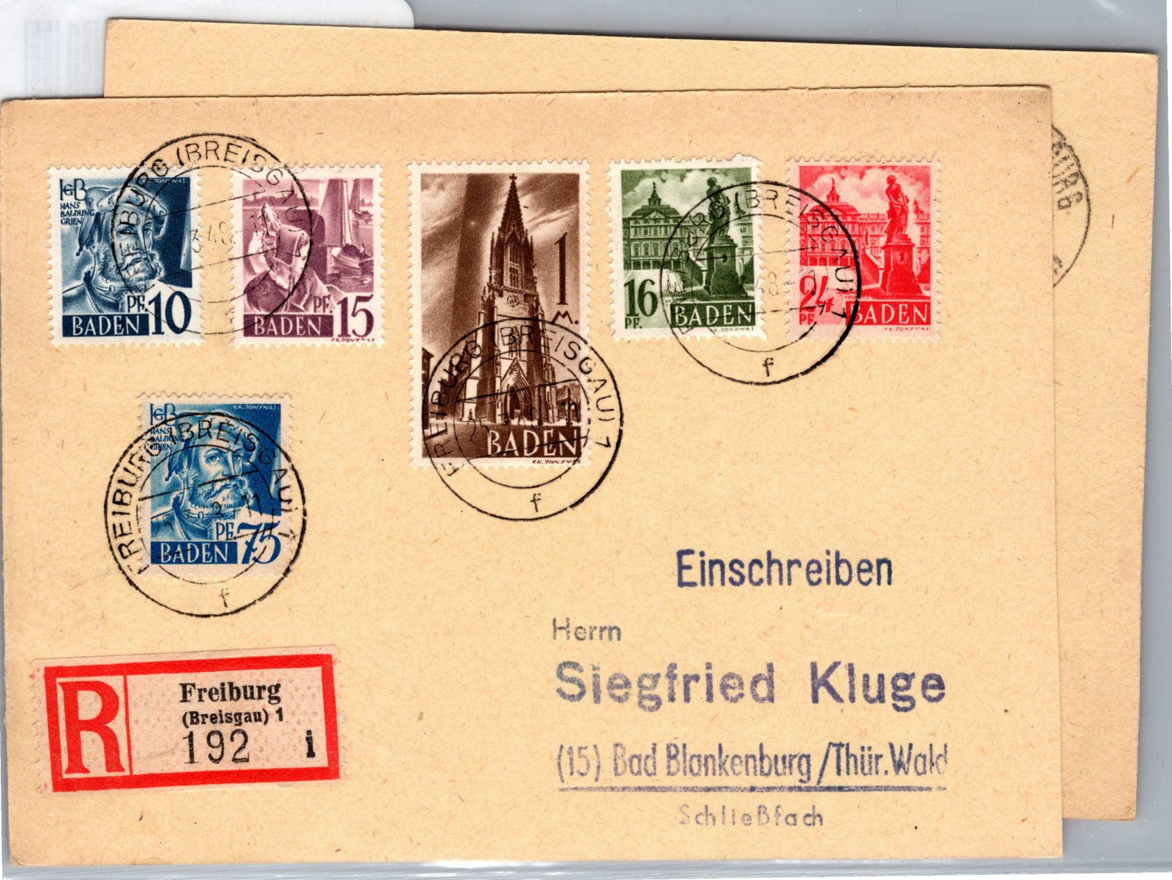 Französische Zone Baden 1-13 auf 2 Karten Einschreiben #DET69