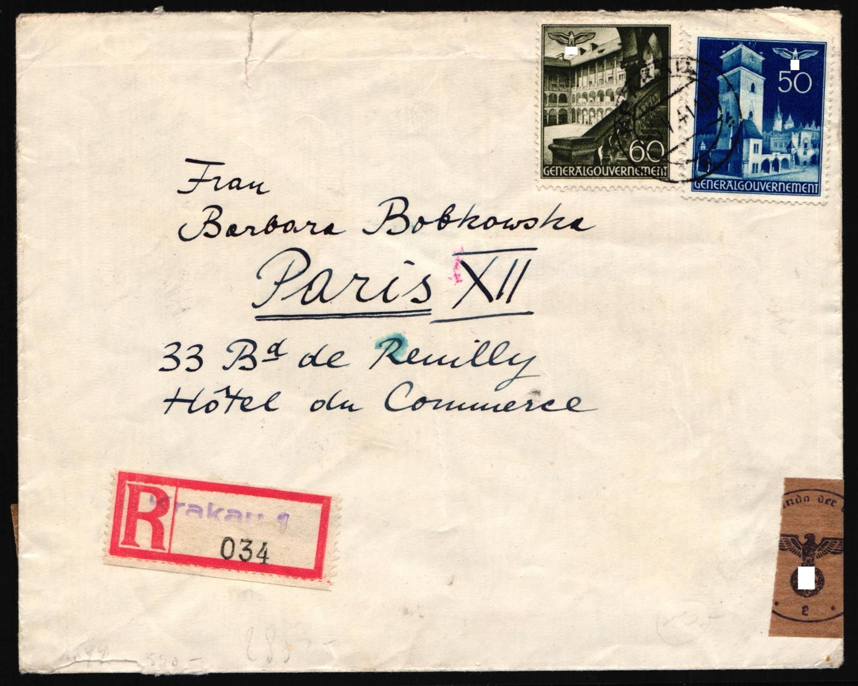 50 und 60 Groschen "Bauwerke" als seltene Auslandsfrankatur nach Paris. Mit Zensur Deutsches Reich.