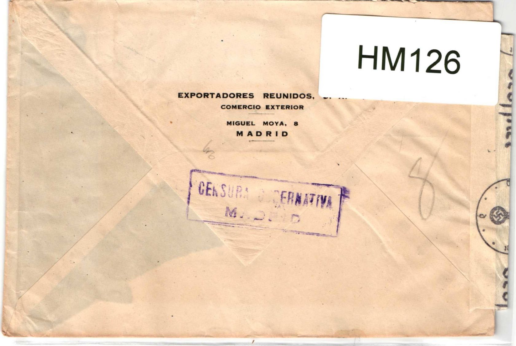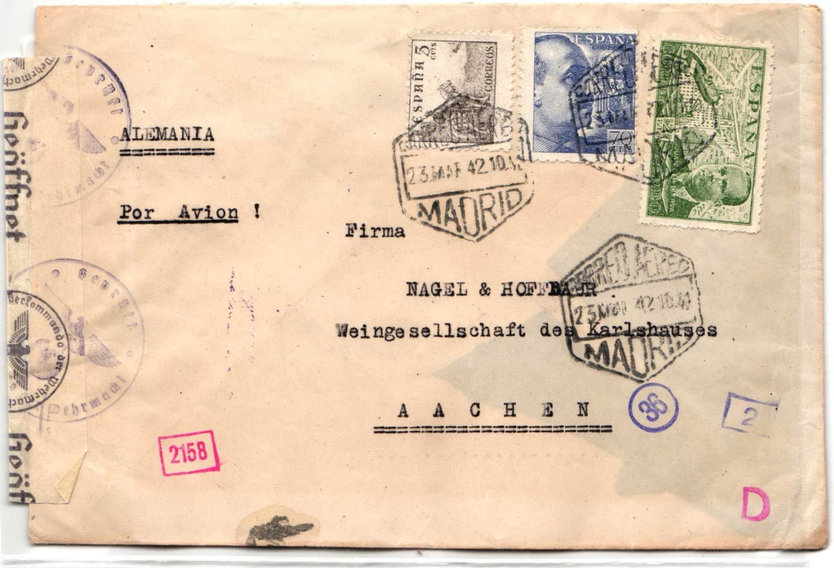 1942, zensierter Luftpostbrief von Madrid nach Aachen