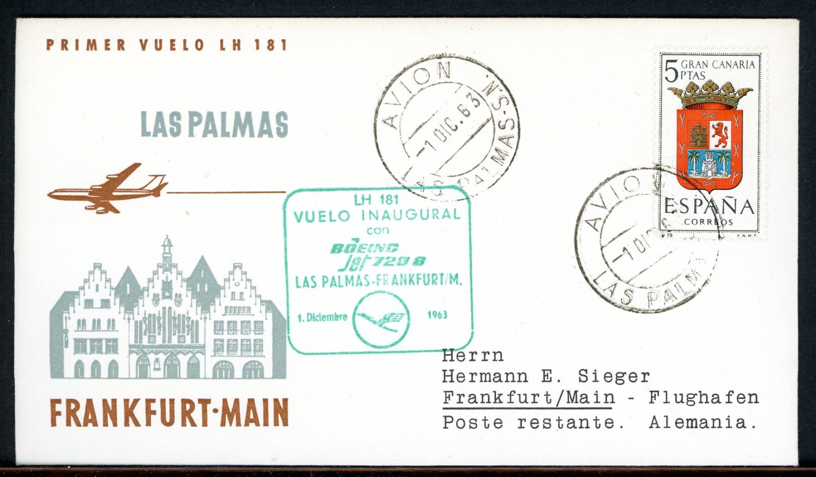 Spanien Lufthansa Erstflug Las Palmas-Frankfurt 1.12.63 1408 #HO556