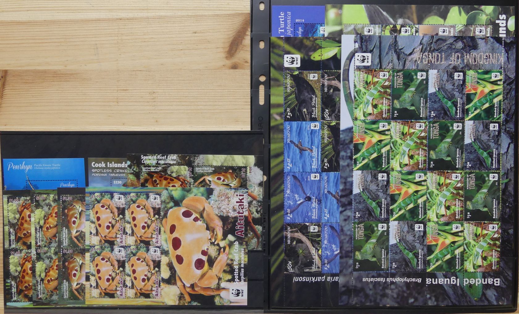 WWF Kleinbögen aus Penrhyn, Tonga, Tonga-Niaoufou sowie Cook. Dazu Blocks und Miniaturkleinbögen, verschiedene Tiergattungen.