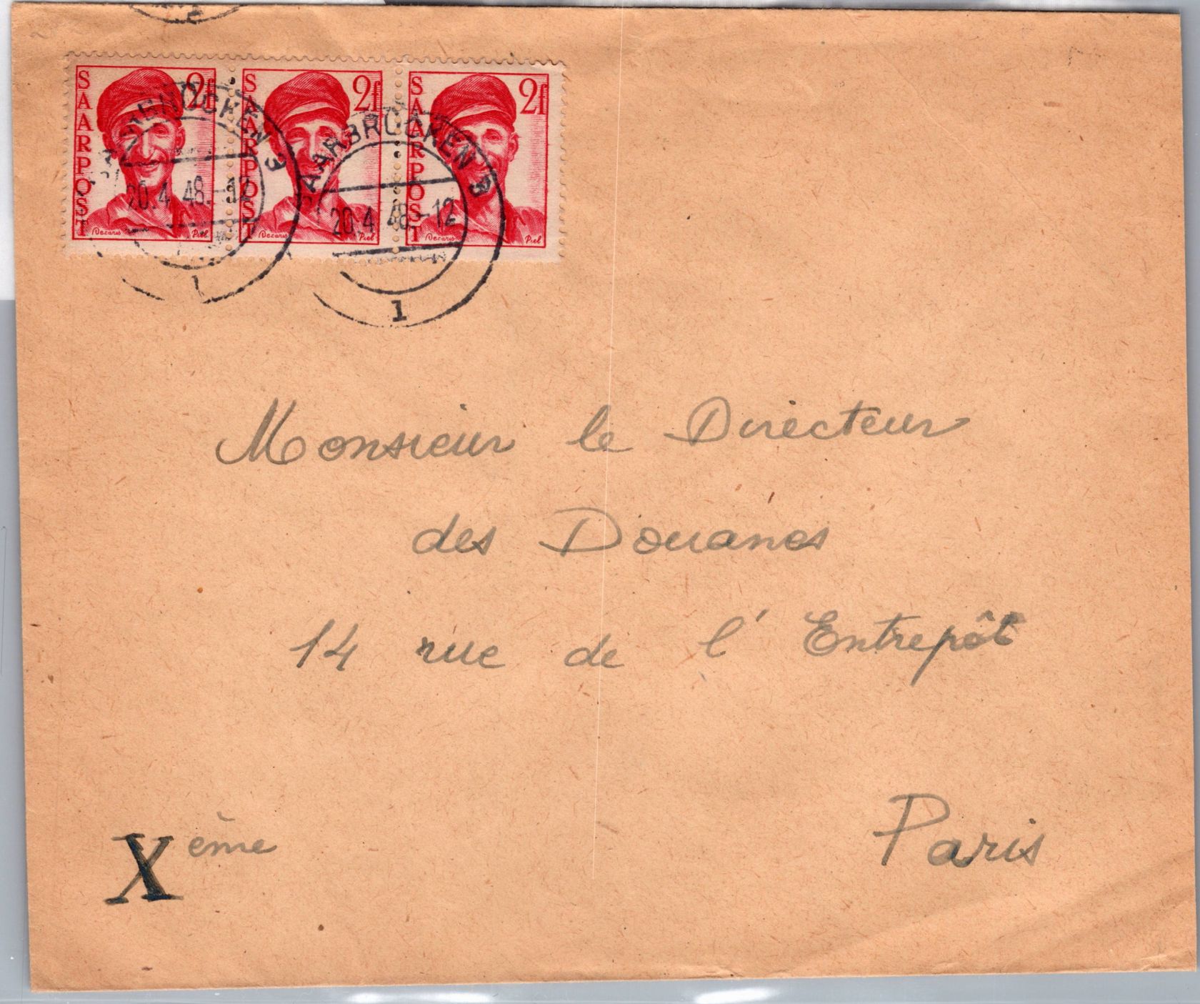 Saarland 242 auf Brief als Mehrfachfrankatur nach Frankreich portogerecht #DEA40
